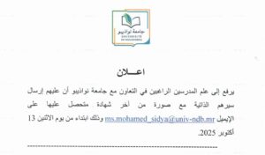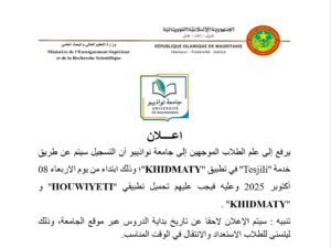 يمثل الدخول الجامعي 2025-2026 محطة حاسمة في مسار جامعة نواذيبو، التي أُنشئت حديثًا للاستجابة للحاجيات المتزايدة في مجال التكوين العالي والبحث العلمي في بلدنا
